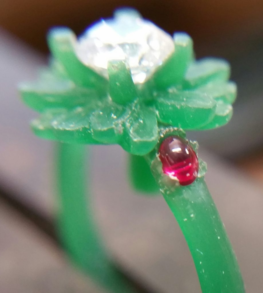 We received the quote and sketches from Richard a few hours after our meeting. Richard then produced the wax models, which were hard to visualise at first from photographs but I asked for more close ups of the ladybird detail and waxes with the stones inserted, which helped, although I still had to use my imagination so I was blown away when I actually saw the final rings in person for the first time.